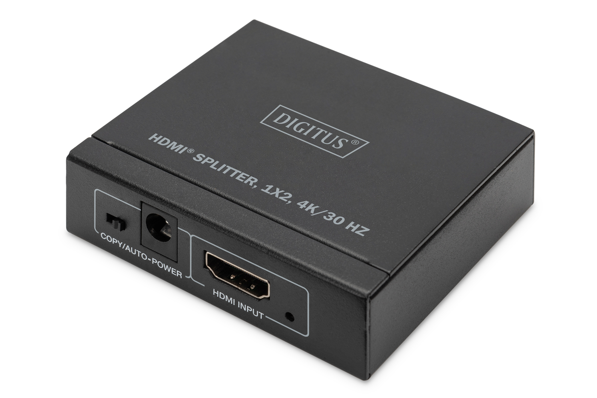 Verteilt ein HDMI-Eingangssignal auf zwei Ausgabedisplays. Unterstützt wird eine maximale Auflösung von 4K2K/30Hz. Über den EDID-Umschalter können zwei Modi gewählt werden (Copy: HDMI-Ausgang 1 / Auto Mode: Vergleicht HDMI-Ausgang 1&2 automatisch und fügt eine neue EDID zusammen und spielt diese zum HDMI-Eingang zurück